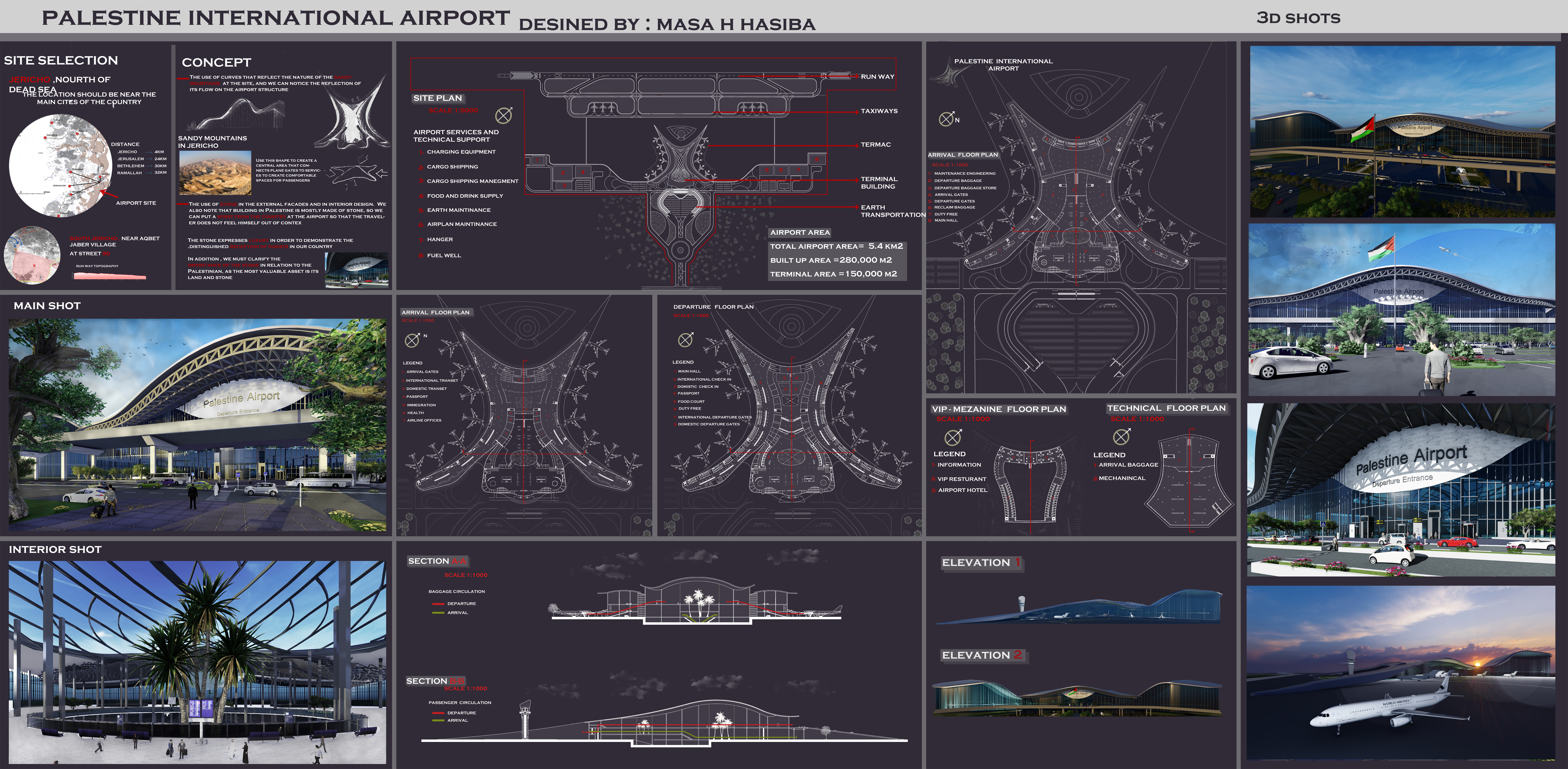 The use of curves that reflect the nature of the sandy mountains at the site and we can notice the reflection of it flow on the airport structure .