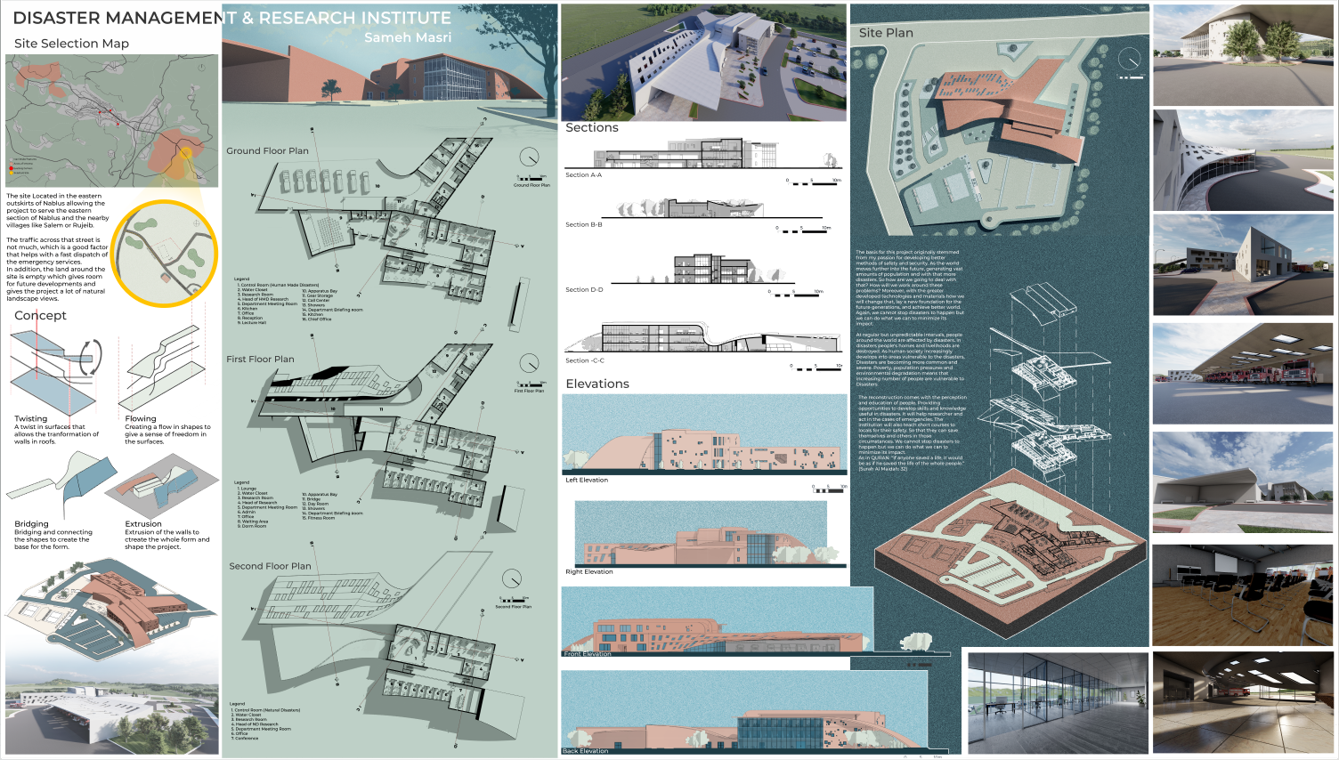 The basis for this project originally stemmed from my passion for developing better methods of safety and security. As the world moves further into the future, generating vast amounts of population and with that more disasters. So how are we going to deal with that? How will we work around these problems? Moreover, with the greater developed technologies and materials how we will change that, lay a new foundation for the future generations, and achieve better world. Again, we cannot stop disasters to happen but we can do what we can to minimize its impact.