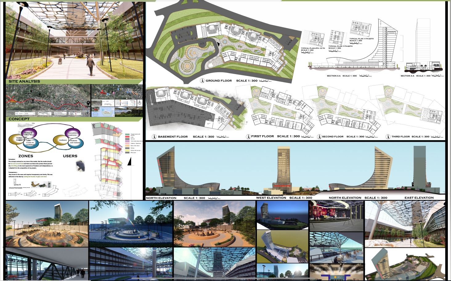 I called it the new media gate for its distinctive and attractive form, and the entrance from the southern side of the project enables the visitor to see the entire project from the outside before entering it.