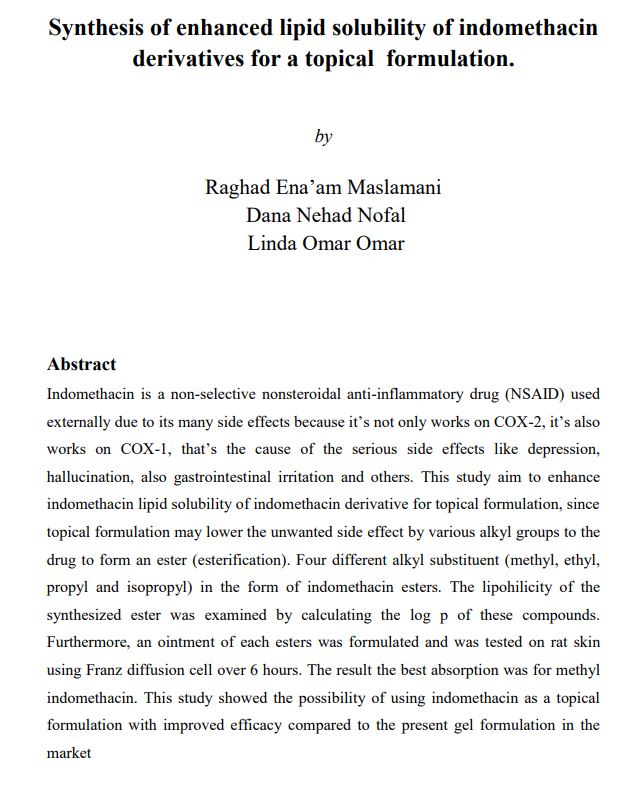 Synthesis of enhanced lipid solubility of indomethacin derivatives for a topical formulation