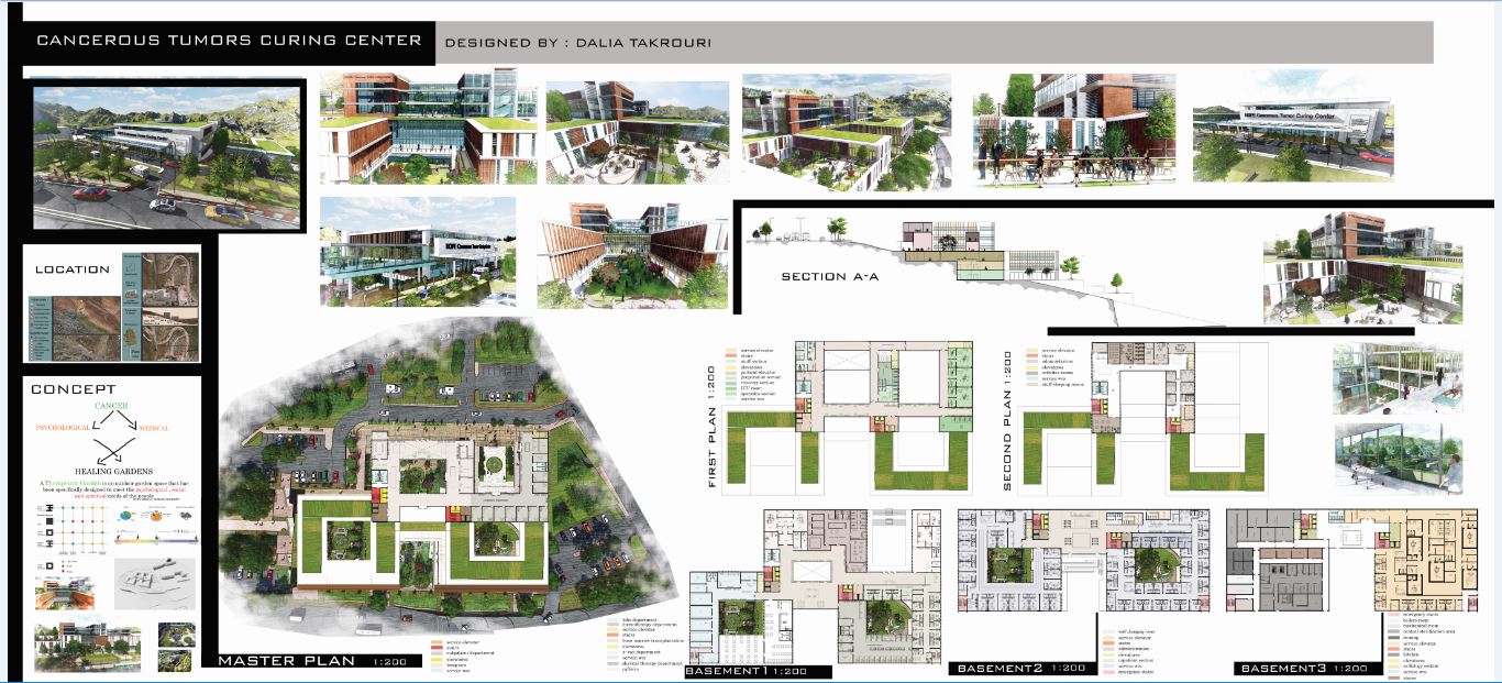 For this and that, I was optional for a cancer hospital project, to be a graduation project from the Faculty of Engineering, Architecture Department, despite the difficulties and multiple sections that I realized early, but I was not surprised, but my awareness of this fact increased the strength of perseverance in work and research to be the first of my design work which I hope I have achieved In its complete implementation.
