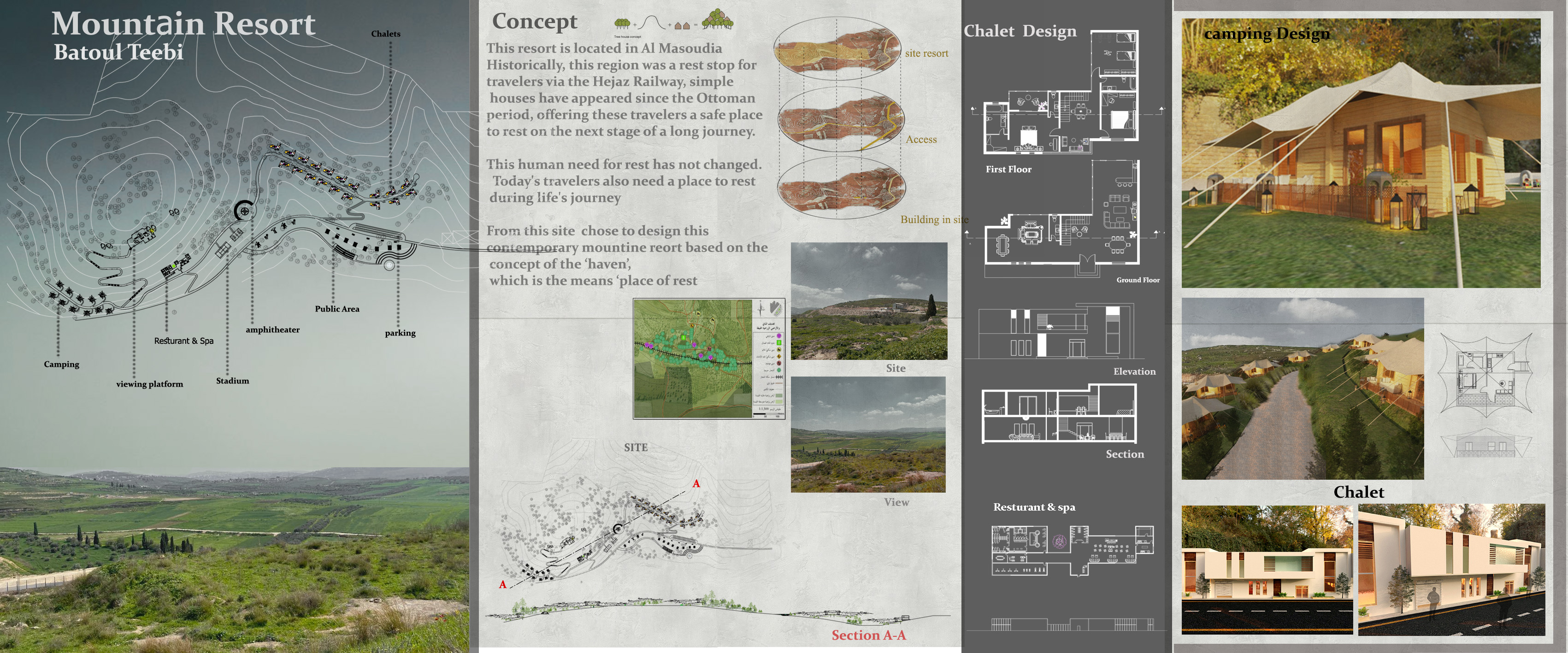 From this location, the design of this contemporary mountain resort was chosen based on the concept of 'sanctuary', which means 'a place of rest.