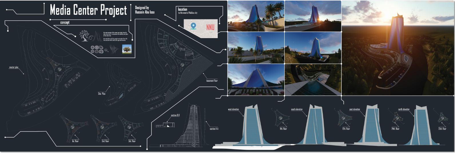 The project is a tower contains many types of media creators, also it’s a training centre for media students and for media employees as well, also it’s contains a TV channel radio channel and newspaper